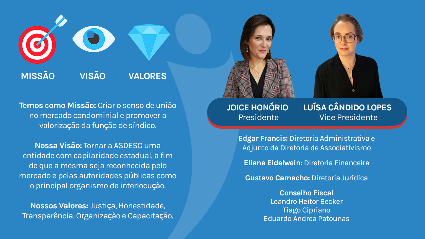 Síndica moradora, Vice-Presidente da ASDESC síndica desde 2019, apaixonada por condomínios, pelo debate em prol da constante capacitação dos síndicos, melhora na qualidade de vida dos moradores e desenvolvimento social em conjunto. Contato: 48 99989-3647